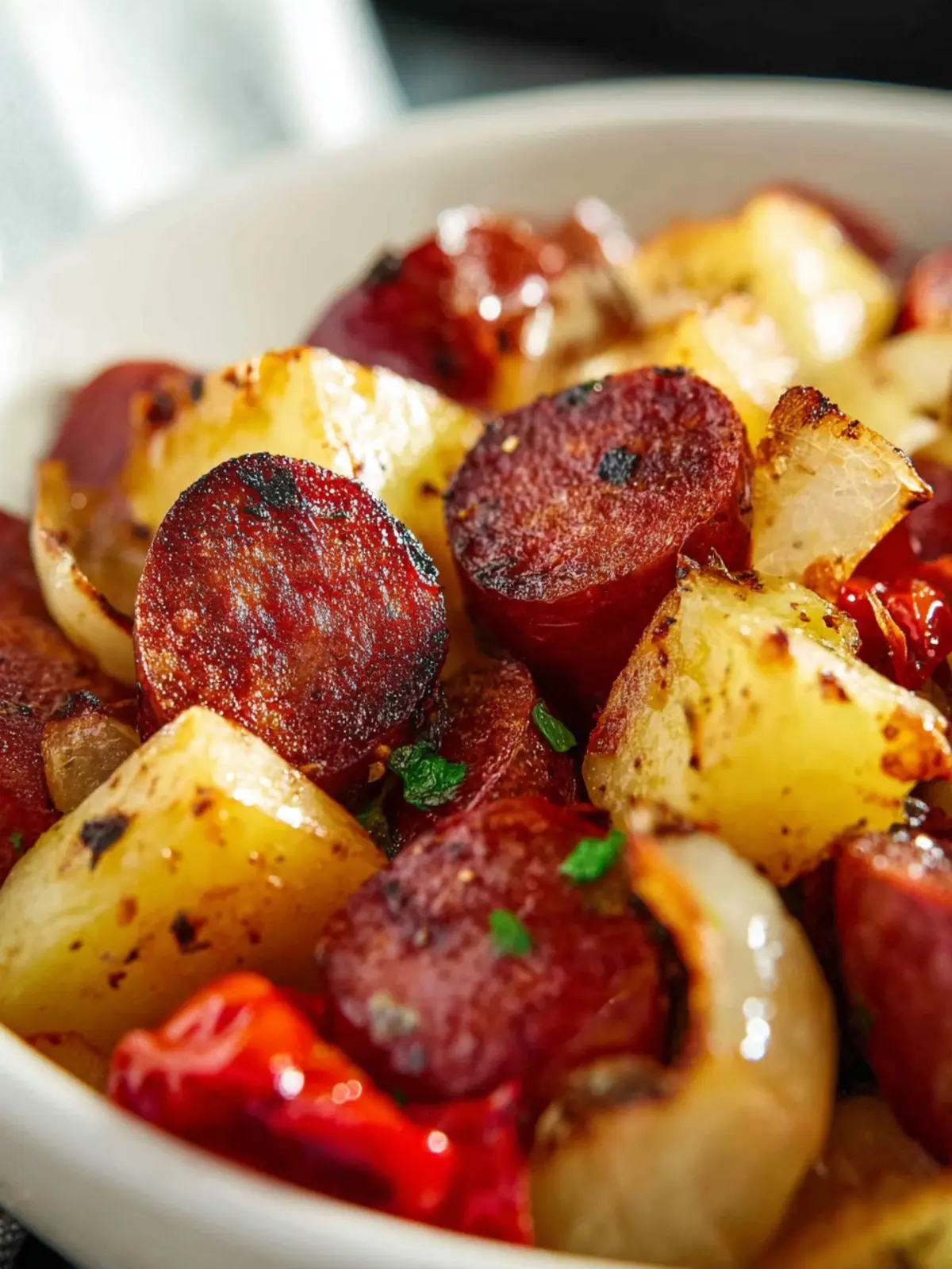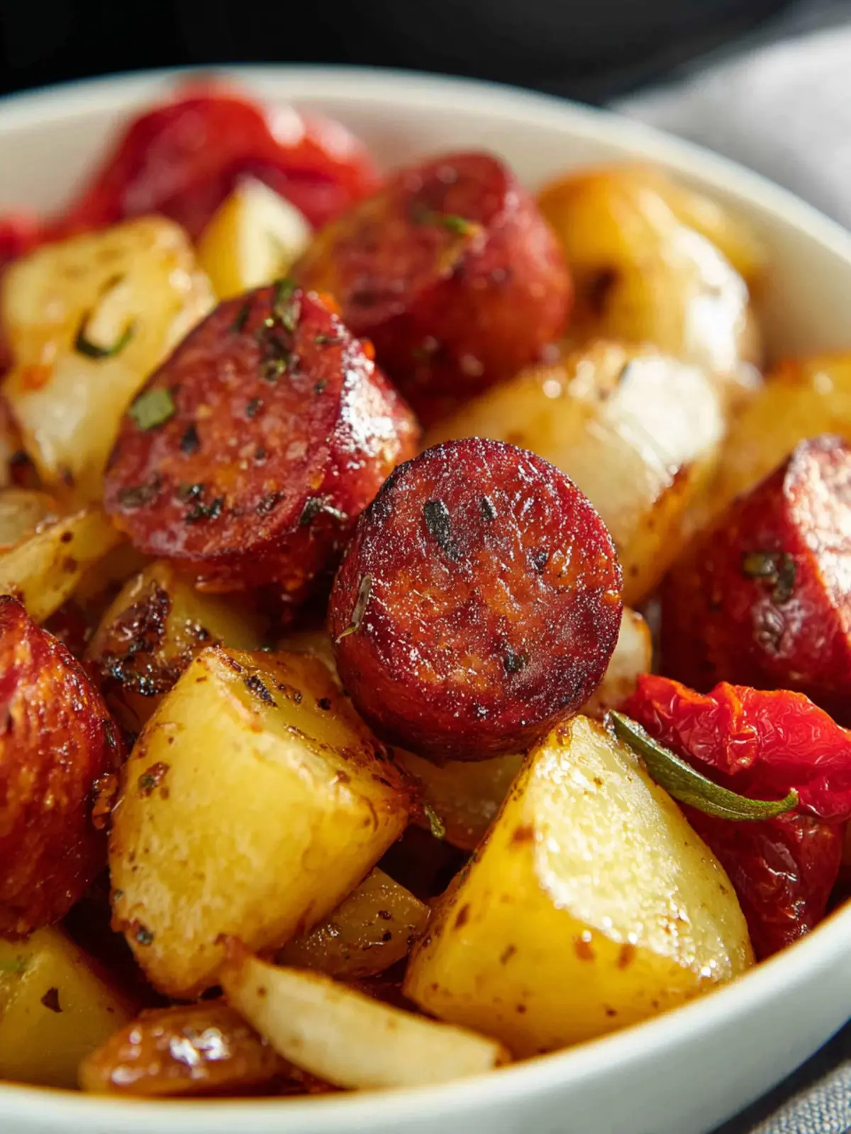 No worries! If you don’t have an air fryer, you can easily adapt this recipe for your oven. Simply spread the sausage and potatoes on a baking sheet, drizzle with oil, and roast in a preheated oven at 425°F (220°C) for about 25-30 minutes, or until everything is golden and crispy. The result will still be delicious!