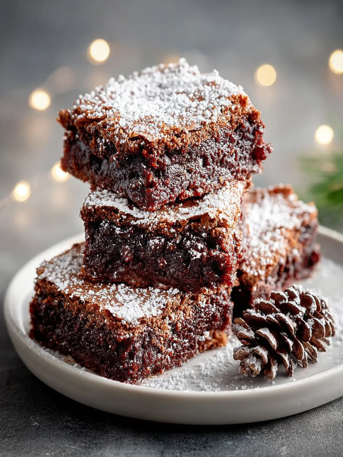 With Vanilla Ice Cream: A scoop of rich vanilla ice cream adds a creamy contrast to the fudgy texture of the brownies. The melting ice cream also beautifully mimics snow, enhancing the wintery appeal.