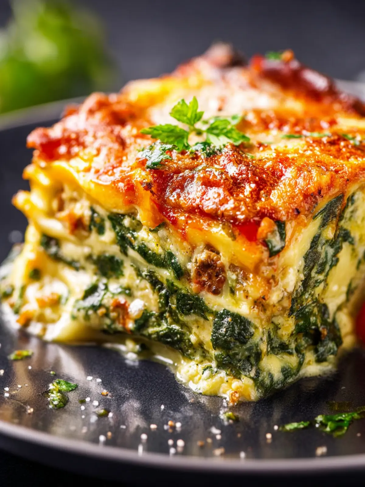 A delicious and hearty lasagna filled with ricotta, spinach, and mozzarella.