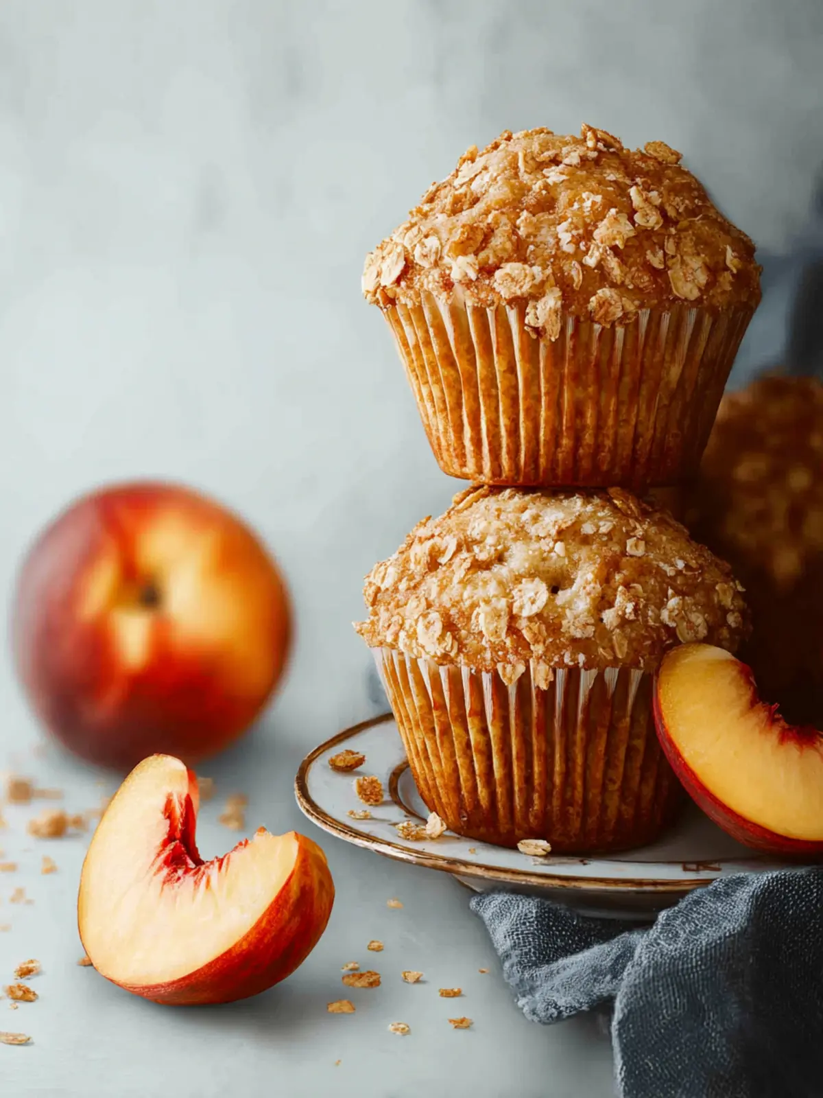 Delicious and healthy peach oat muffins, perfect for breakfast or a snack!