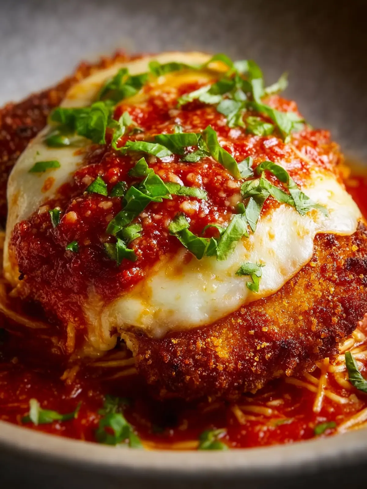 This is a key point to ensure your Chicken Parmesan is cooked perfectly. The internal temperature should reach 165°F (75°C). If you don’t have a meat thermometer, you can cut into the thickest part of the chicken—the juices should run clear, and the meat should be white all the way through.