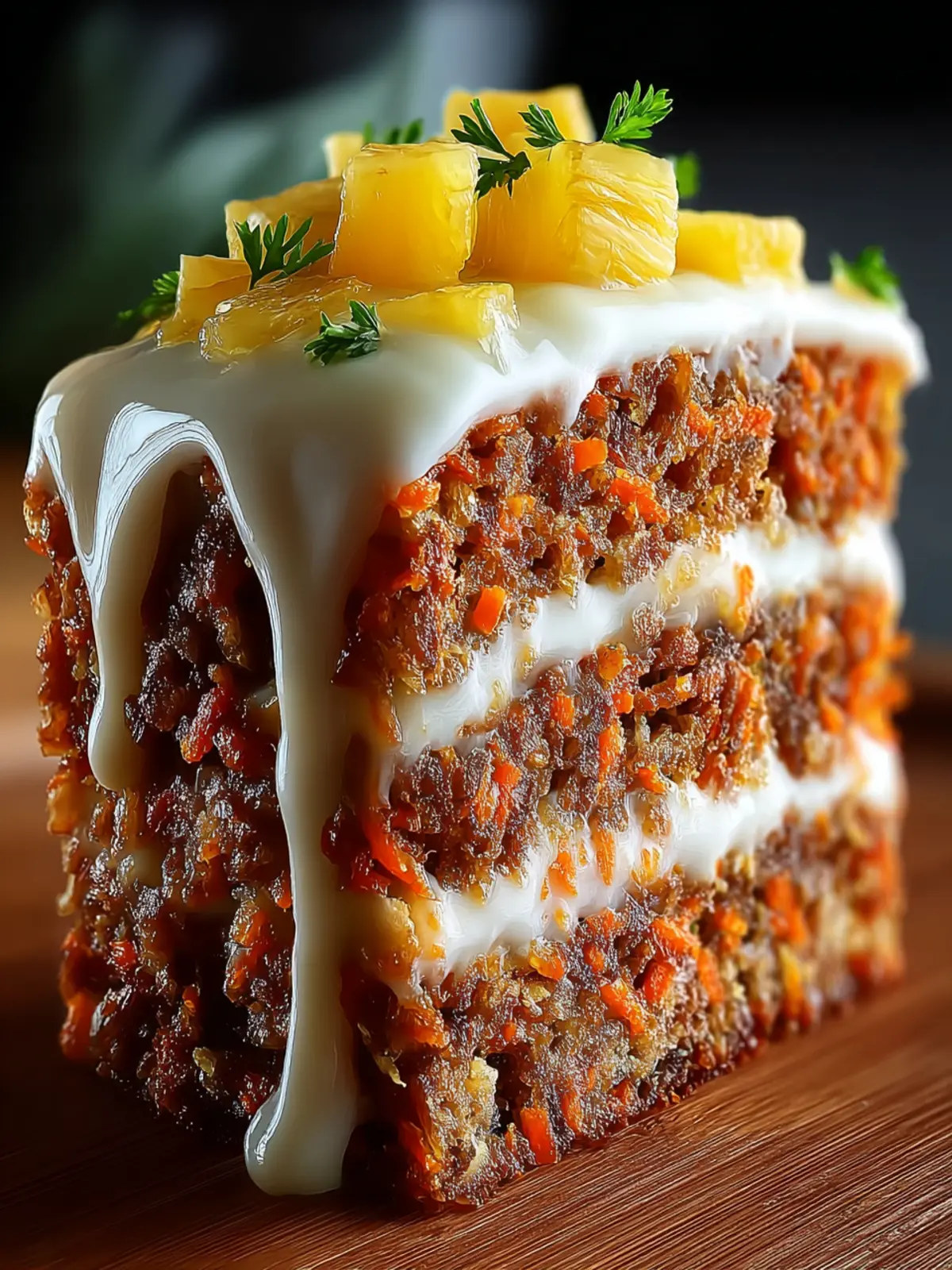 What makes this cake so special? It’s more than just the standout flavor—it’s a celebration of the unique ingredients that come together to create an unforgettable taste experience. The carrots provide moisture and subtle sweetness, while the pineapple adds a tropical twist that brightens every bite. Topping it all off is the luscious cream cheese glaze, which perfectly balances the cake’s flavors with its rich, tangy sweetness.