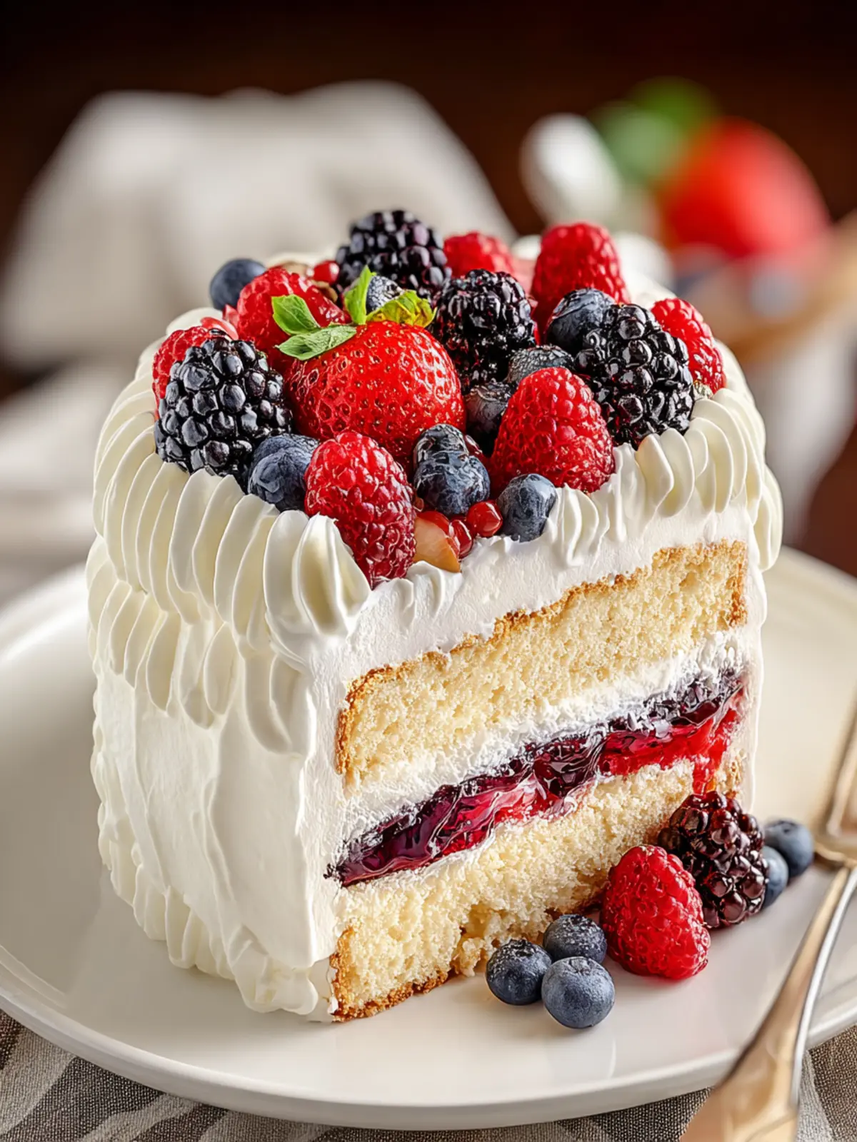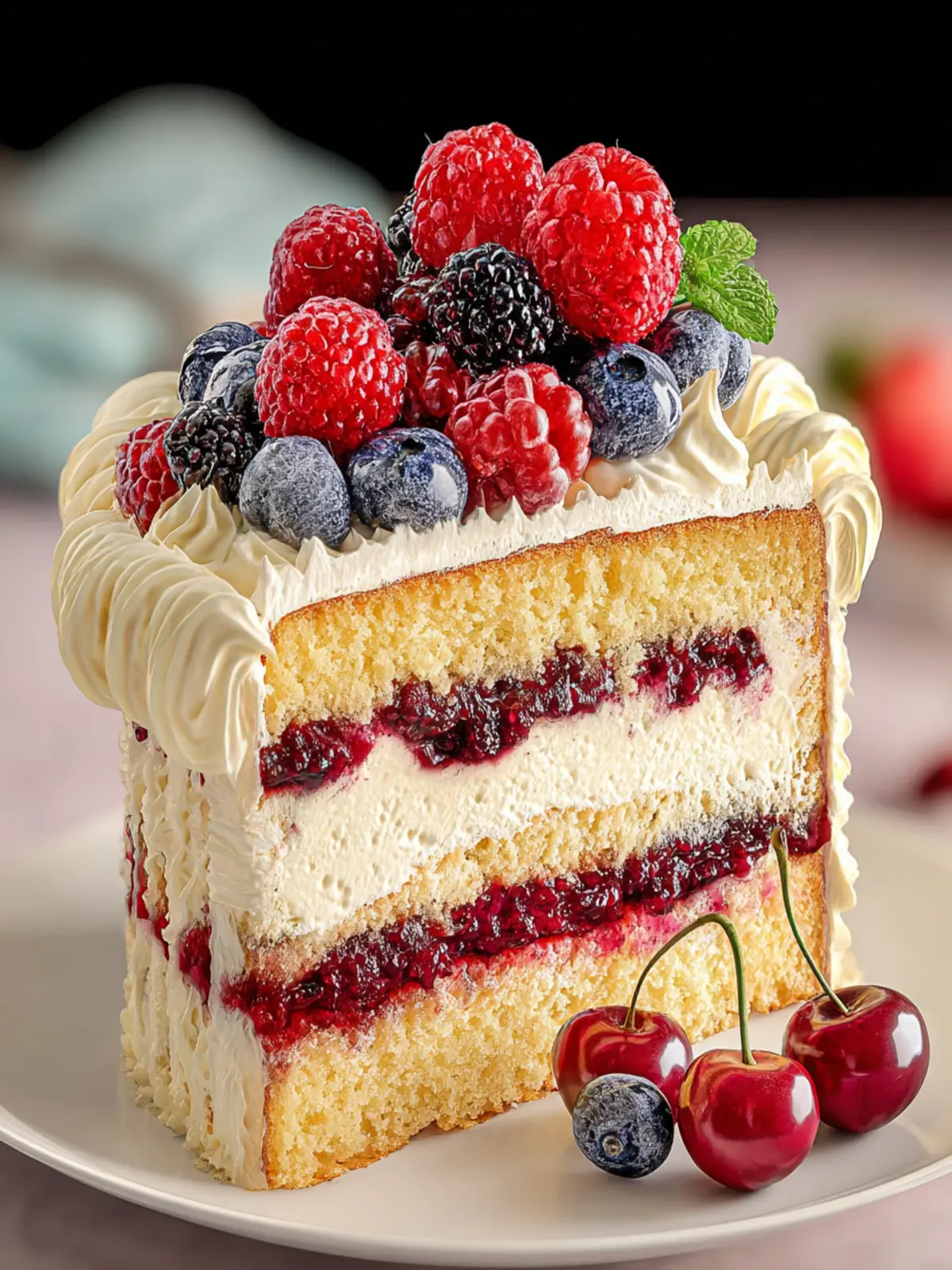 Let’s not forget the crowning glory—fresh berries. Their juicy burst of flavor adds a balance to the sweetness of the cake, making it a refreshing treat. This cake isn’t just a dessert; it’s a celebration of the seasons, bringing the taste of summer right to your plate, no matter the time of year.