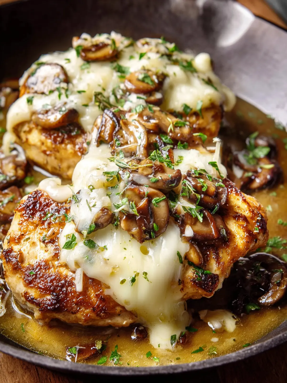 A delicious creamy garlic chicken dish with mushrooms, perfect for a family dinner.