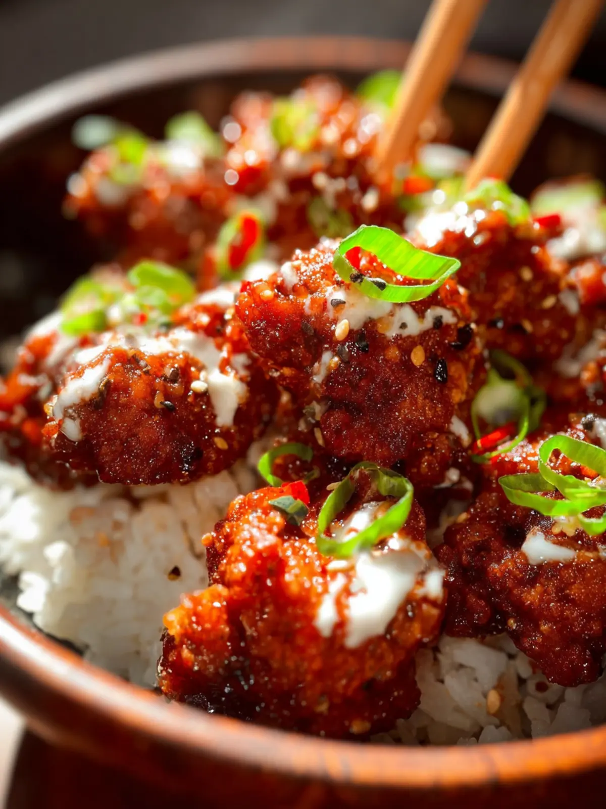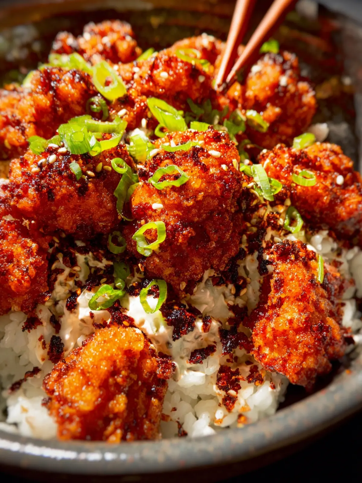 Finally, chopped green onions add a fresh and vibrant touch. They not only enhance the visual appeal but also provide a delightful crunch that contrasts beautifully with the crispy chicken and creamy rice.