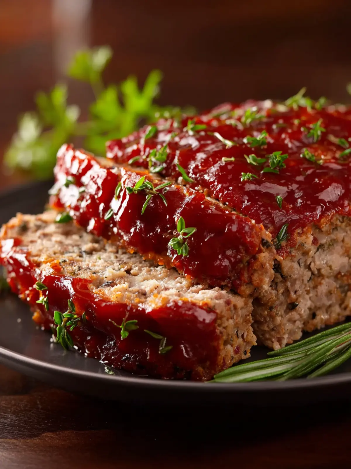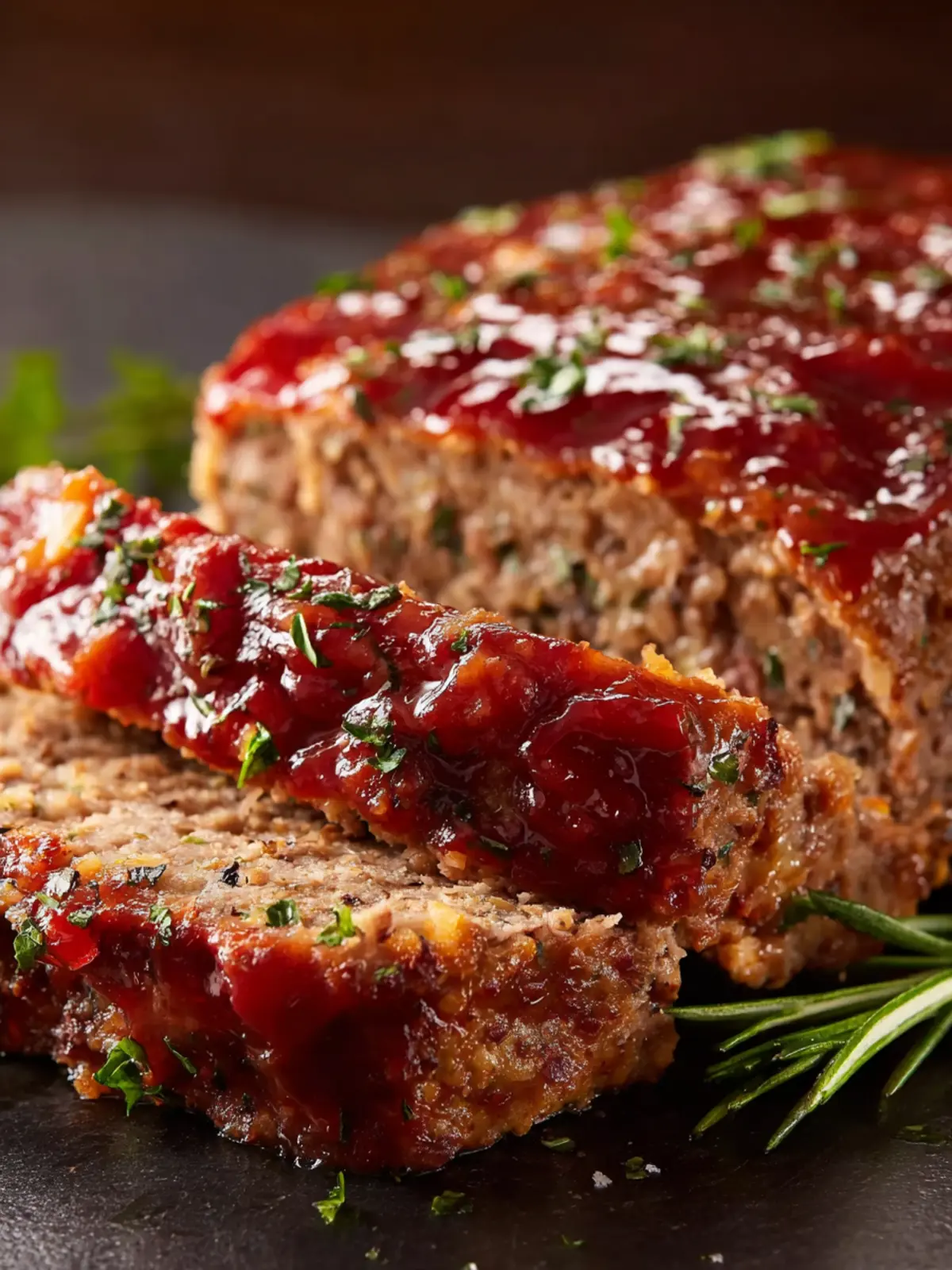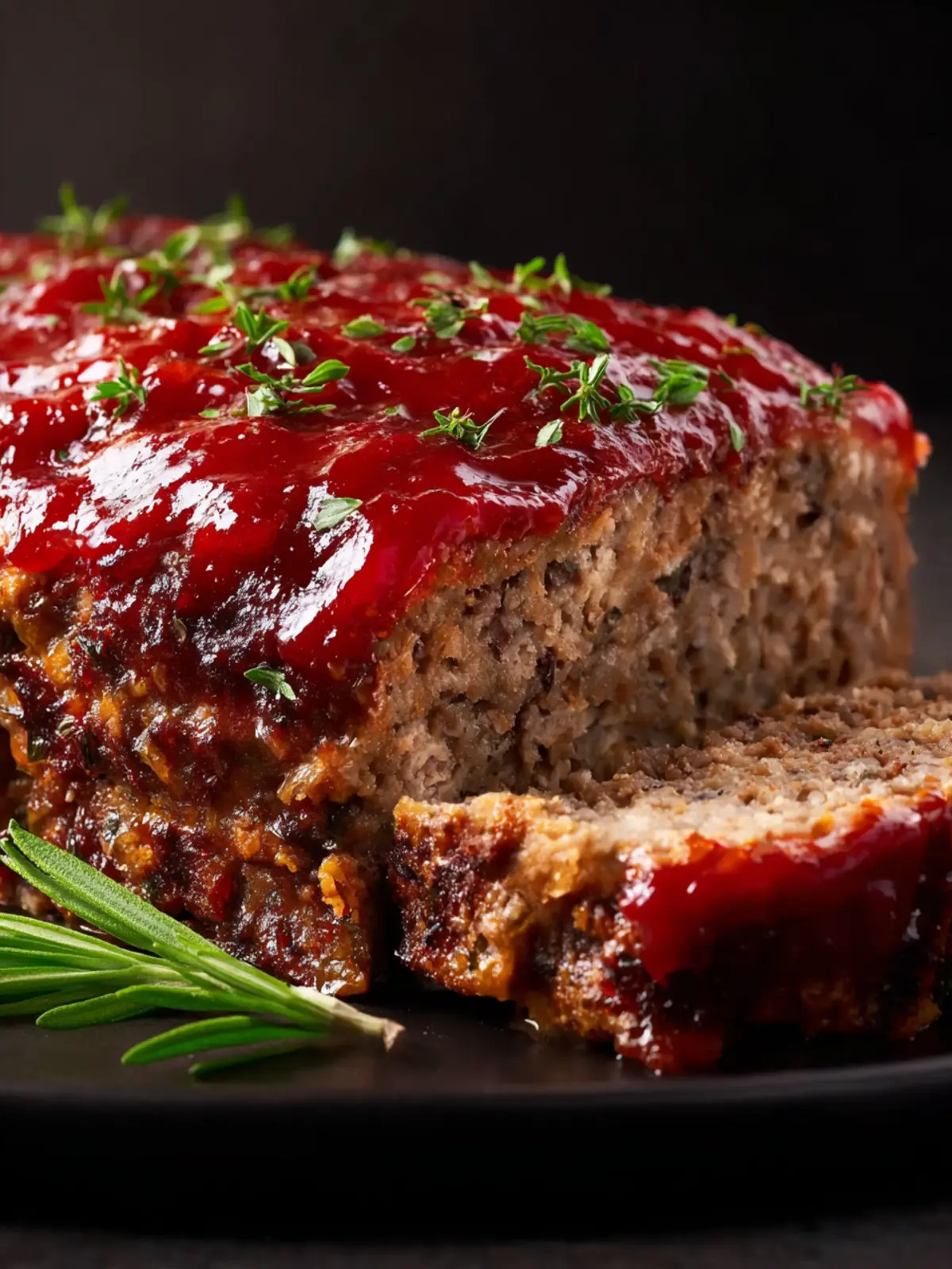 A delicious and hearty meatloaf made with ground beef and a blend of flavorful ingredients, perfect for a family dinner.
