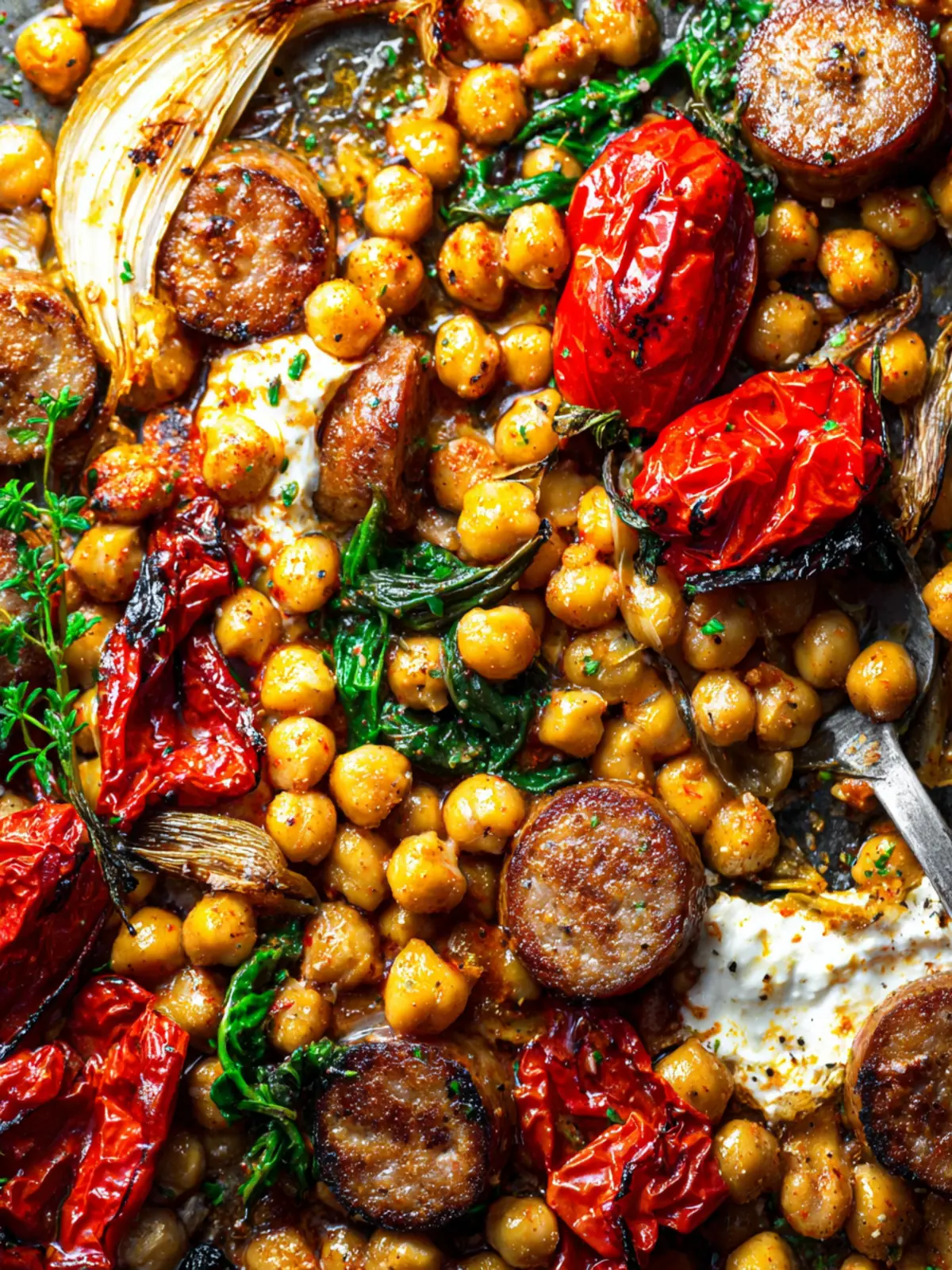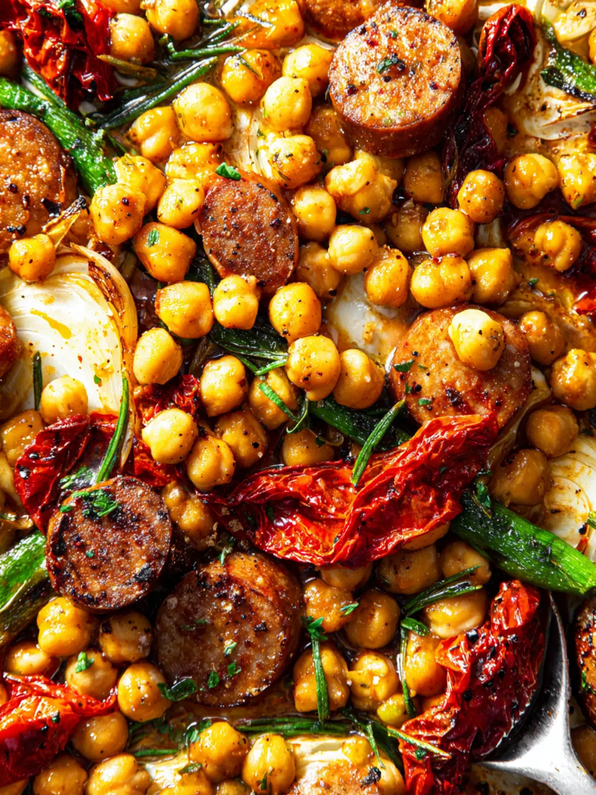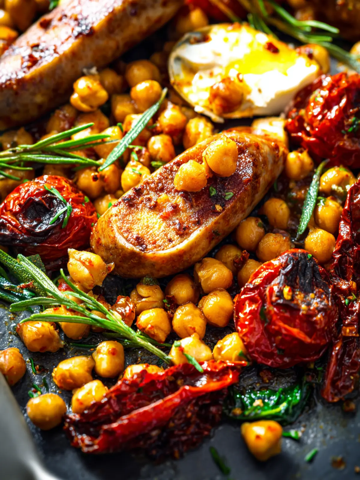 Sun Dried Tomato Sausage Chickpea: Bold Sheet Pan Bliss